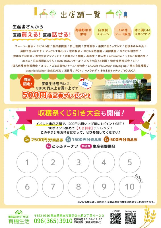 毎年ご好評いただいている、有機生活の 一年に一度のビッグイベント「収穫祭」 を、今年も開催いたします!